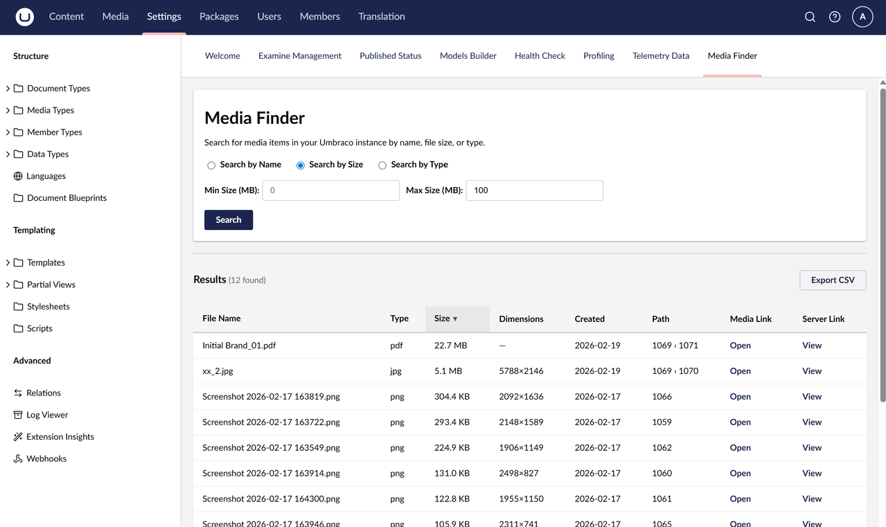 SEO and performance auditing for Umbraco backoffice editors, powered by Google PageSpeed Insights.